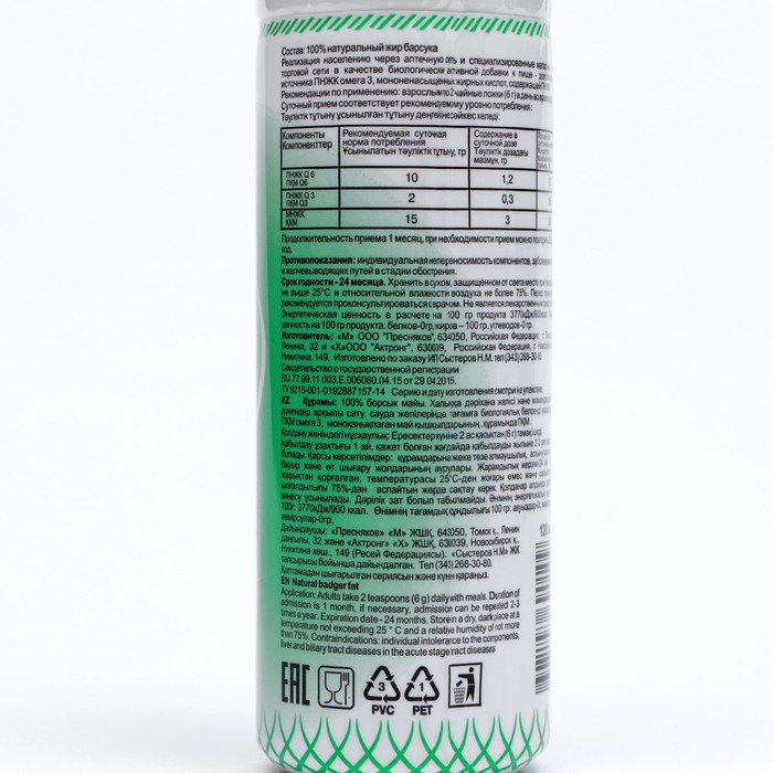 Состав: 100% барсучий жир.