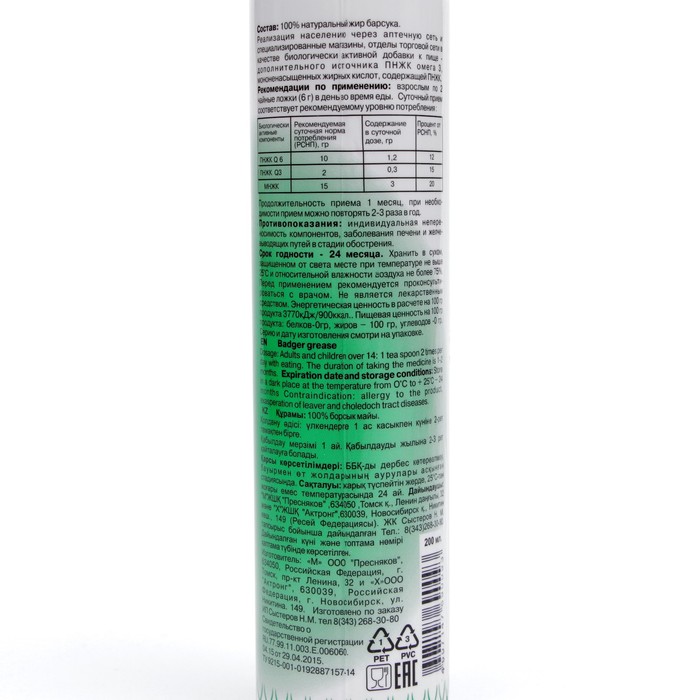Состав: 100% барсучий жир.