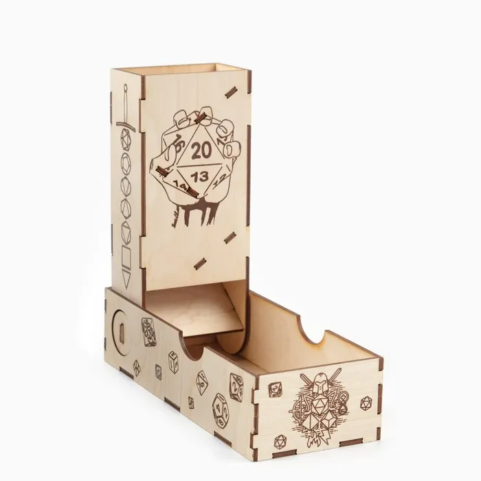 Башня для бросания кубиков для культовой ролевой игры Dungeons & Dragons станет незаменимым элементом на вашем игровом столе и добавит атмосферности и удобства в процесс игры.
