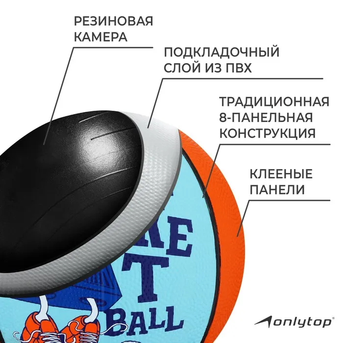 Баскетбольный мяч ONLYTOP «Робот», клееный, 8 панелей, р. 3, резина, резиновая камера — Характеристики