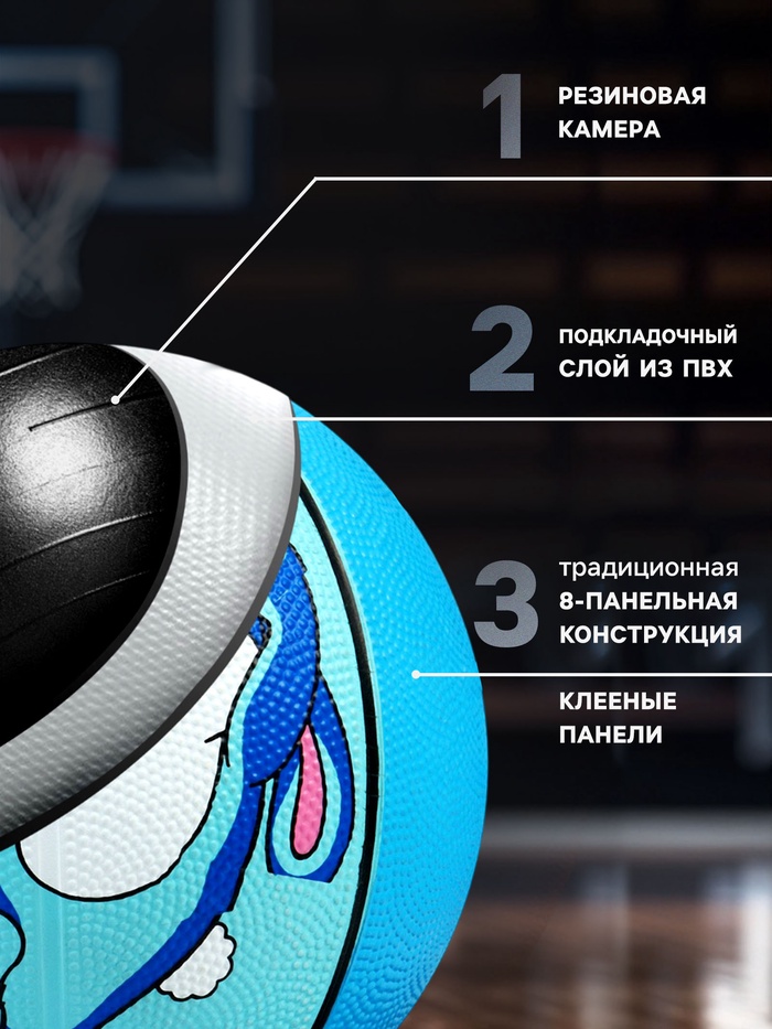 Баскетбольный мяч ONLYTOP «Заяц», клееный, 8 панелей, р. 3, резина, резиновая камера — Характеристики