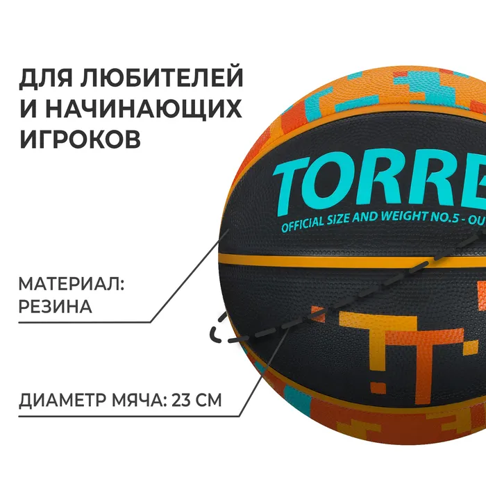 Баскетбольный мяч TORRES TT, B023155, клееный, 8 панелей, р. 5, резина, бутиловая камера — Характеристики