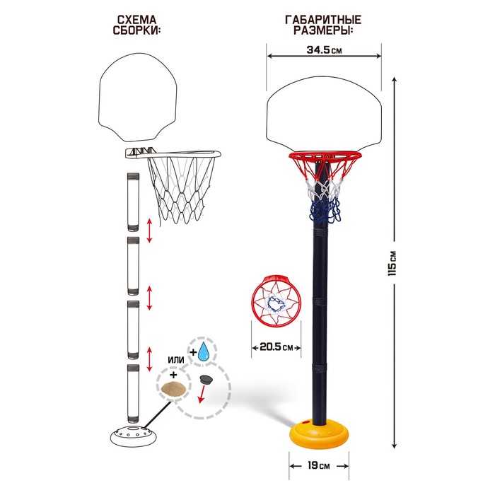Маленький спортсмен придёт в восторг от баскетбольного набора. Теперь заниматься любимым делом можно когда угодно — просто разместите стойку с щитом и кольцом во дворе или дома и устраивайте весёлые тренировки.