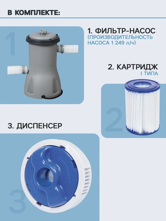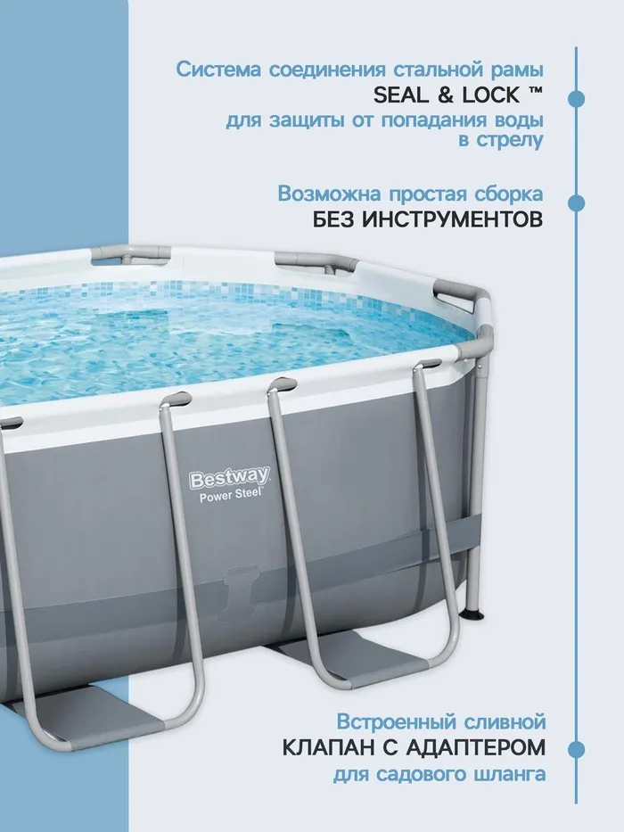 Бассейн каркасный Bestway Power Steel 5614 А, 305×200×84 см, фильтр-насос, диспенсер — Характеристики
