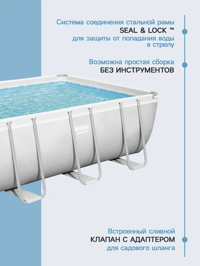Бассейн каркасный Bestway Power Steel 56465, 549×274×122 см, фильтр-насос, лестница, тент, прямоугольный — Характеристики