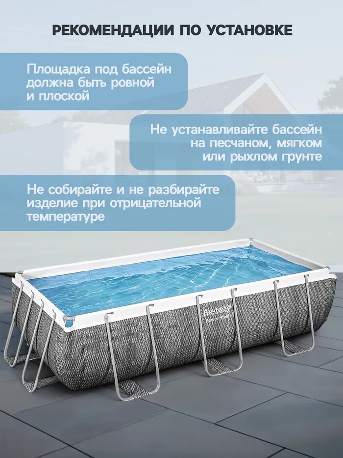Бассейн каркасный Bestway Power Steel 56721, 404×201×100 см, фильтр-насос, лестница, прямоугольный — Характеристики