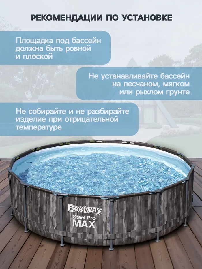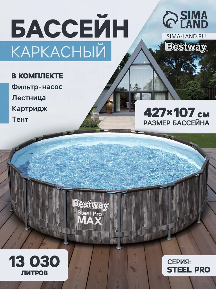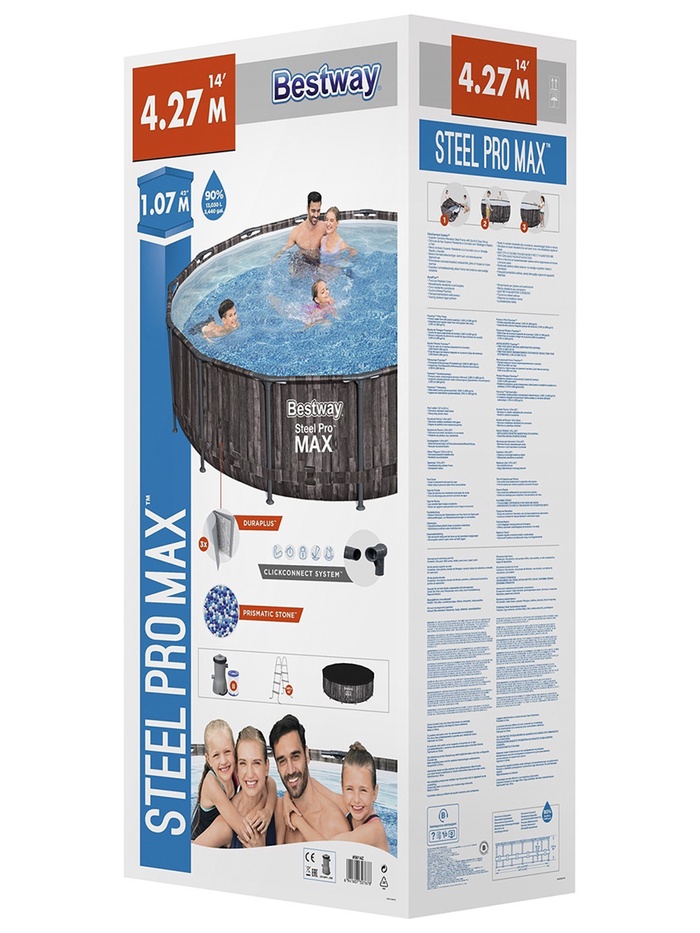 Бассейн каркасный Bestway Steel Pro 5614Z, 427×107 см, фильтр-насос, лестница, тент, круглый — Характеристики