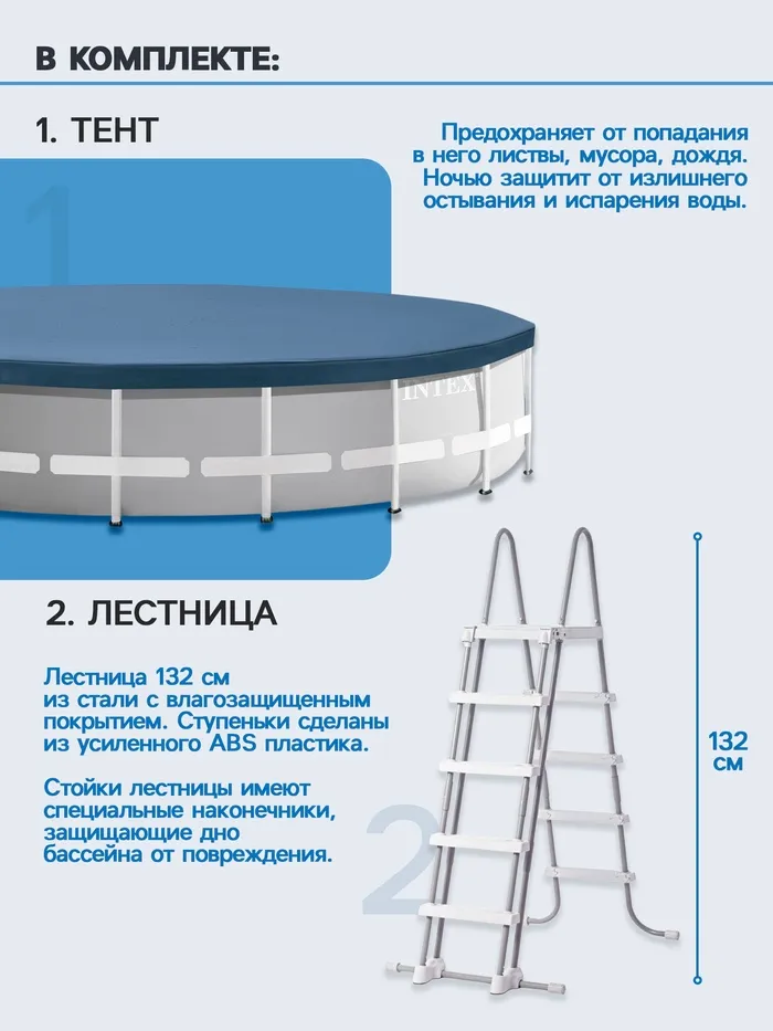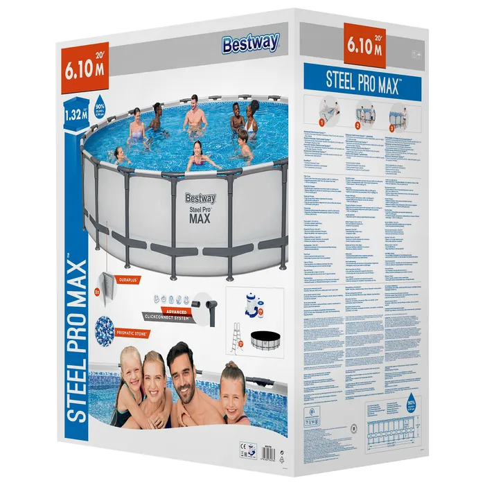 Бассейн каркасный Bestway Steel Pro Max 561FМ, 610×132 см, фильтр-насос, лестница, тент, круглый — Характеристики