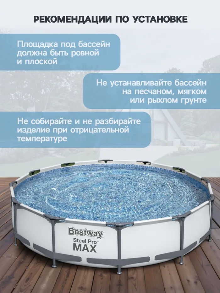 Бассейн каркасный Bestway Steel Pro MAX 56416, 366×76 см, фильтр-насос, круглый — Характеристики