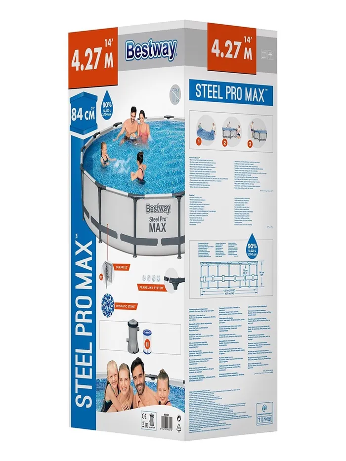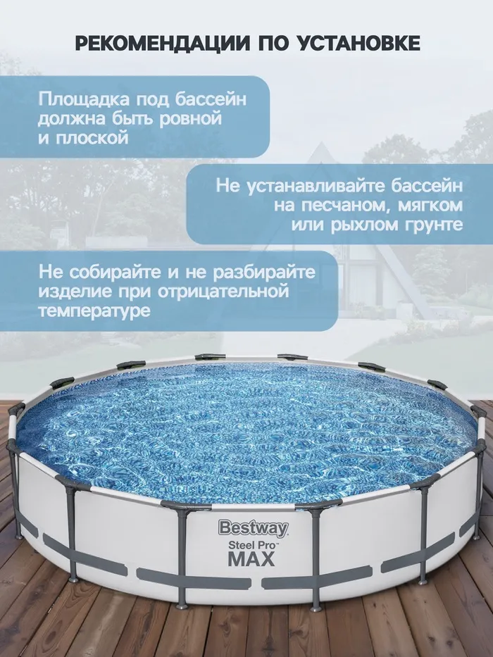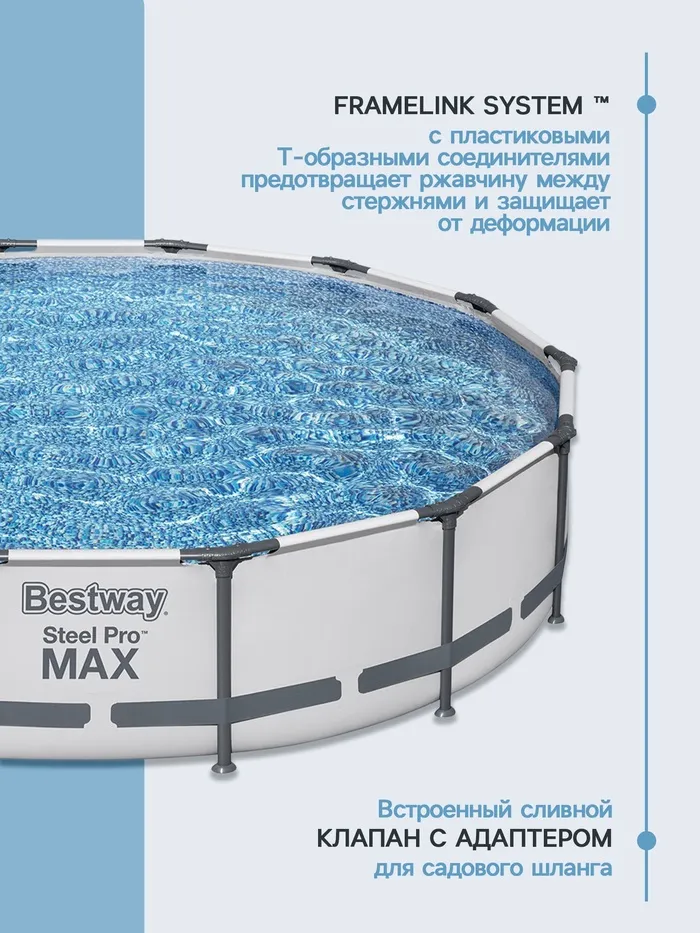 Бассейн каркасный Bestway Steel Pro MAX 56595, 427×84 см, фильтр-насос, круглый — Характеристики