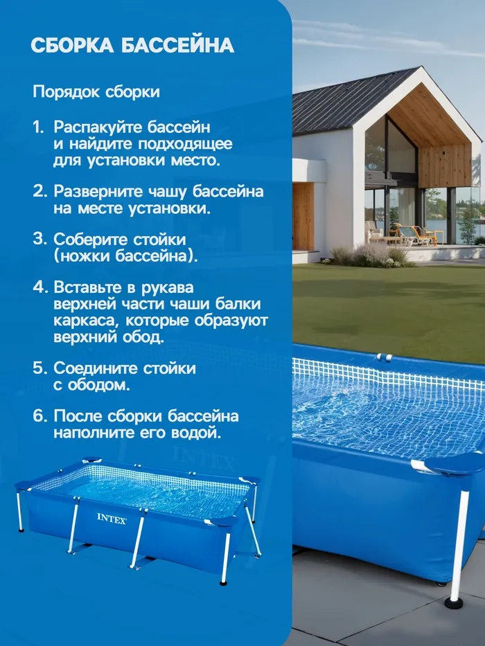 Бассейн каркасный INTEX Frame Set 28271NP, 260×160×65 см, от 6 лет, прямоугольный — Характеристики
