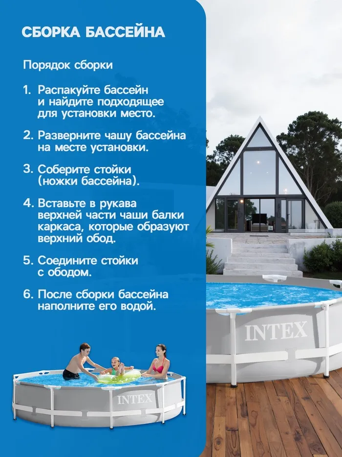 - Инструкция по эксплуатации каркасного бассейна Intex на русском языке;