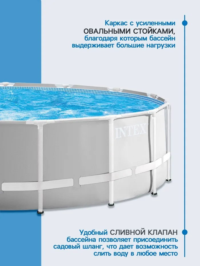 Бассейн каркасный INTEX Prism Frame 26726NP, 457×122 см, фильтр-насос, лестница, тент, подстилка, круглый — Характеристики