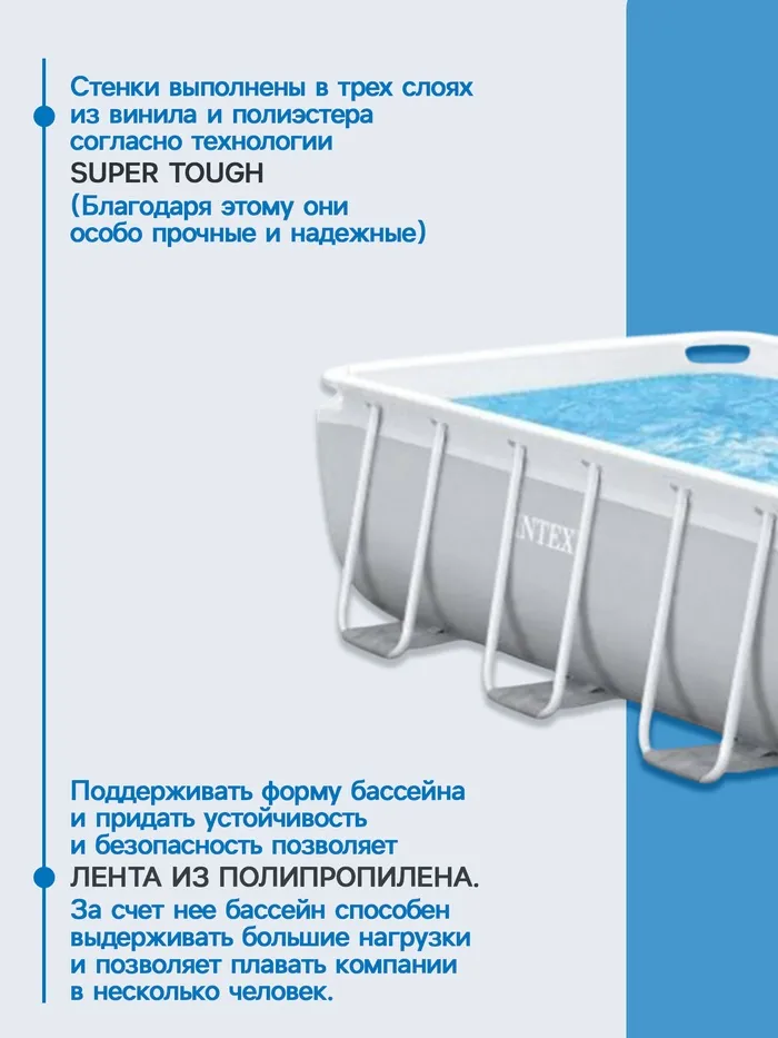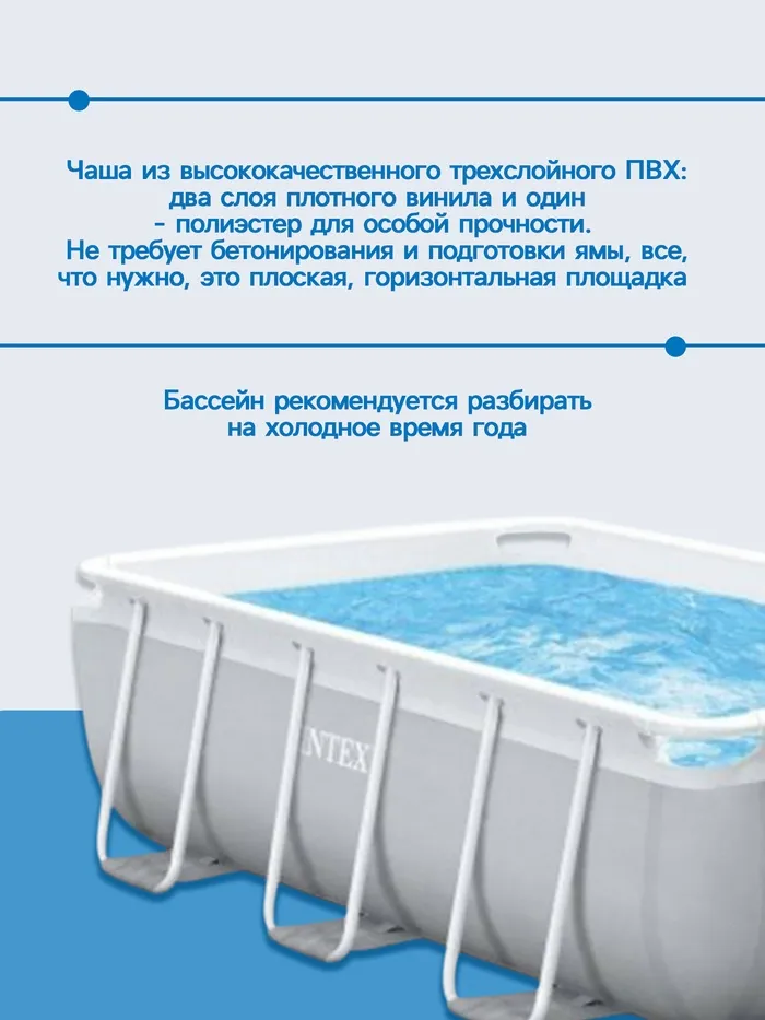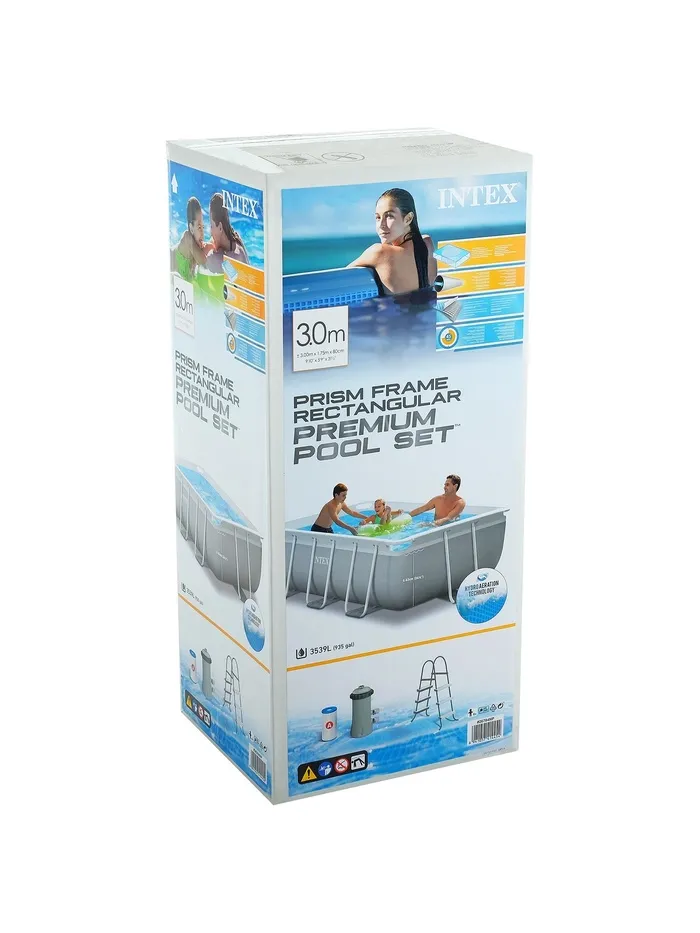 Бассейн каркасный INTEX Prism Frame 26784NP, 300×175×80 см, фильтр-насос, лестница, прямоугольный — Характеристики
