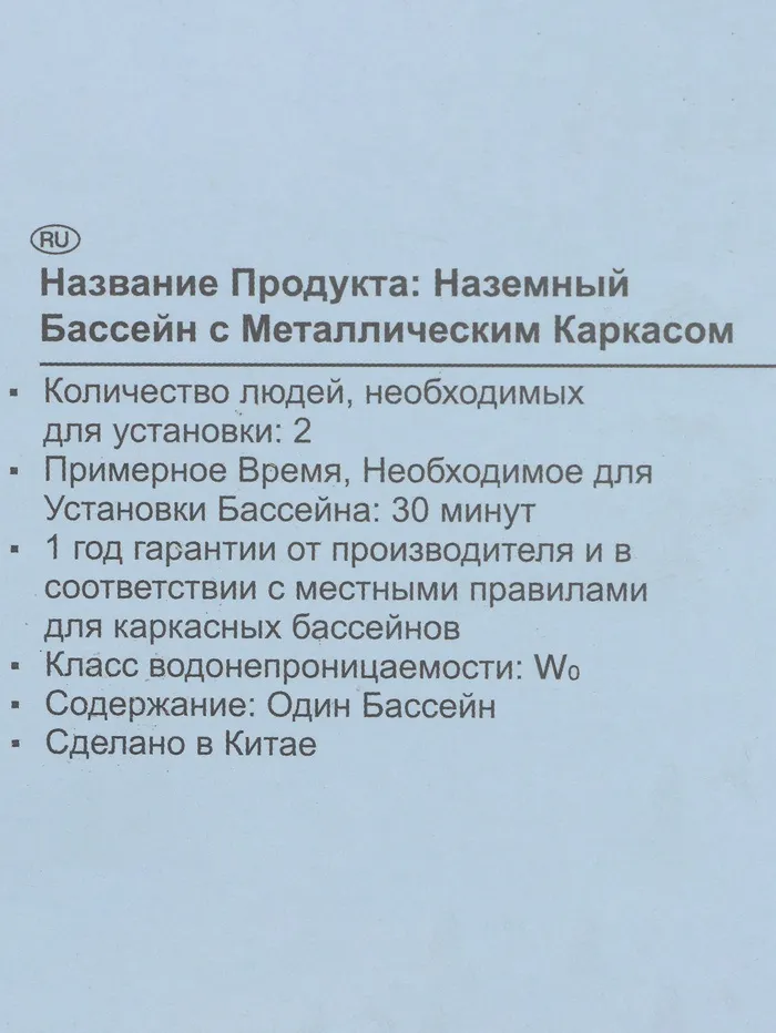 Прост в эксплуатации, достаточно установить его на ровную поверхность и можно наливать воду, время сборки не занимает более 30 минут. Так как его не надо надувать, риск испортить ткань бассейна сводится к минимуму.