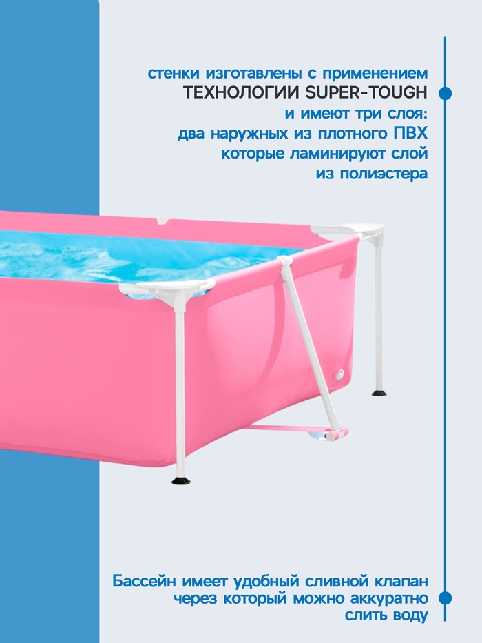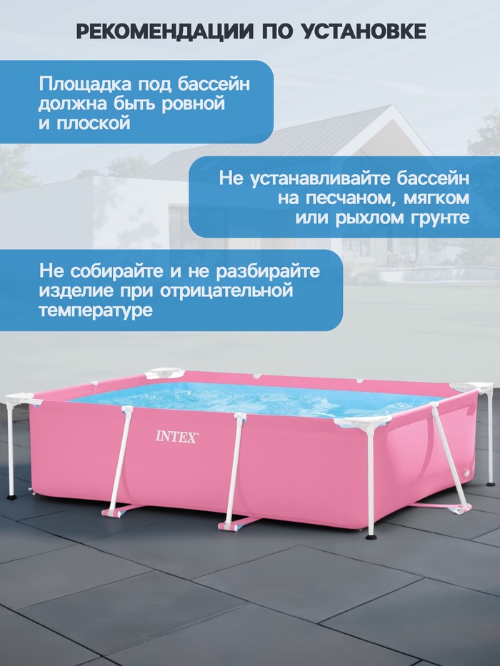 Каркасный бассейн Pink Frame Pool подойдёт для размещения на придомовом участке. Для установки потребуется только ровная площадка, очищенная от острых предметов.