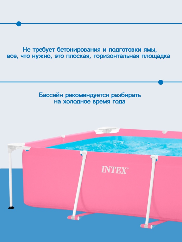 Бассейн каркасный Pink Frame Pool, 220×150×60 см, розовый, круглый, 28266NP INTEX — Характеристики