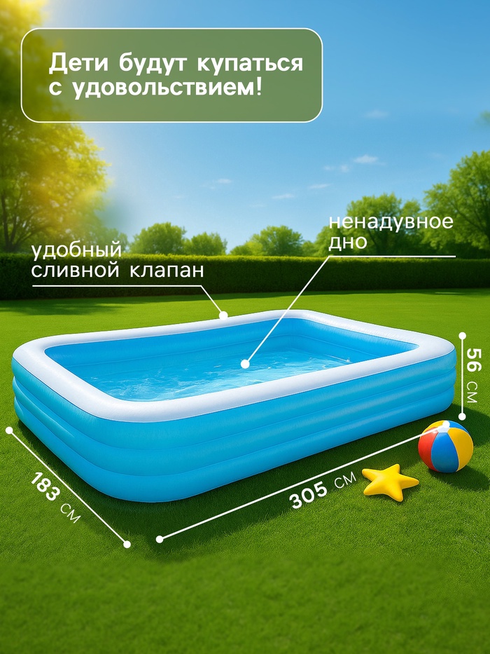 Бассейн надувной Bestway, 305×183×56 см, от 6 лет, 54009 — Характеристики