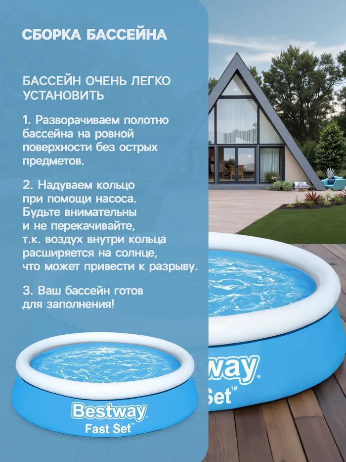 Бассейн надувной Bestway Fast Set 57392, 183×51 см, круглый — Характеристики