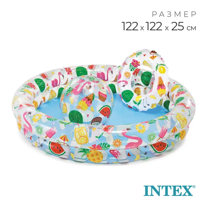 Надувной бассейн предназначен для активного отдыха и летнего досуга. Яркий дизайн не оставит ребёнка равнодушным. Бассейн можно установить на дачном участке или во дворе загородного дома.