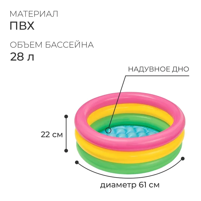 Бассейн надувной «Радуга», 61 х 22 см, от 1-3 лет, 57107NP INTEX — Характеристики