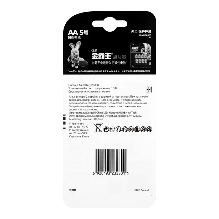 Батарейка алкалиновая Duracell Basic (CH), AA, LR06-8BL, 1.5В, блистер, 8 шт — Характеристики