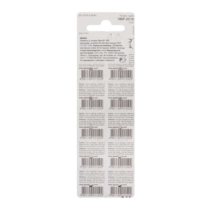 Когда речь идет о надежности и долговечности, алкалиновая батарейка GP 186-10BL — это выбор, который оправдает ваши ожидания. С напряжением 1,5 В и типоразмером LR43 (аналогичные G12, V12GA, 186), она обеспечивает стабильную работу ваших устройств, будь то часы, калькуляторы, игрушки или медицинские приборы.