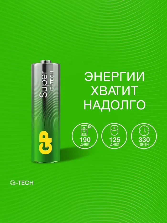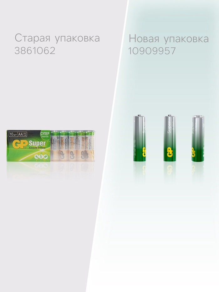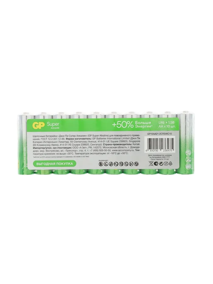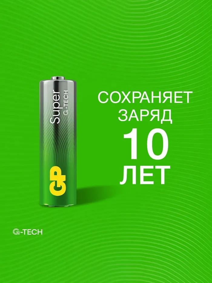 Батарейка алкалиновая GP Super, AA, LR6-10S, 1.5 В, спайка, 10 шт. — Характеристики