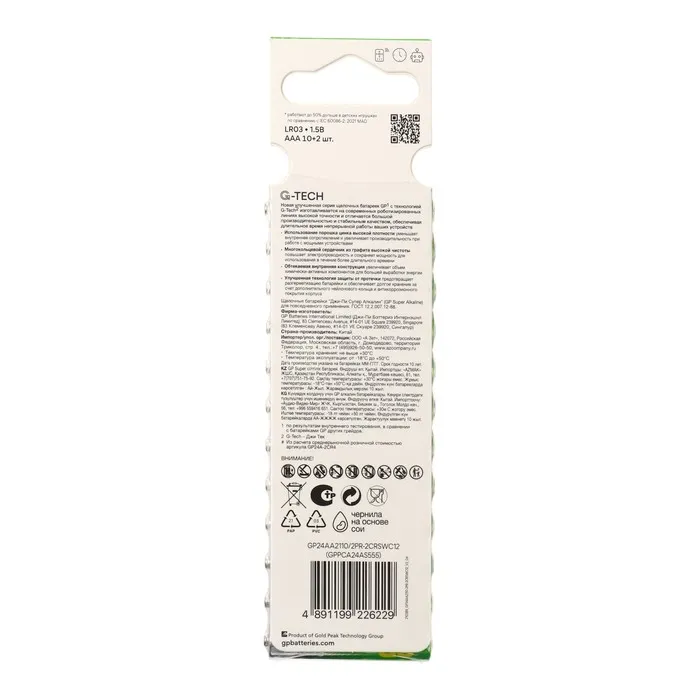Новая линейка батареек GP Super Alkaline с технологией G-TECH, которая обеспечивает до 50%* больше мощности, позволяя вам наслаждаться использованием ваших устройств без перерывов. Технология G-TECH гарантирует длительное время службы ваших устройств. Благодаря использованию графита высокой чистоты и высококачественного порошка цинка S, батарейки обеспечивают высокую мощность и стабильное напряжение на протяжении продолжительного времени. Запатентованная система предотвращения протечек обеспечивает безопасность использования и защиту ваших устройств. Эти щелочные батарейки выделяются соотношением цены и качества и идеально подходят для повседневных устройств, таких как часы, пульты дистанционного управления и другие. Выберите батарейки GP Super Alkaline с технологией G-TECH для надежной работы ваших устройств.