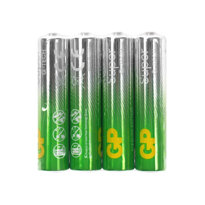 Алкалиновые батарейки GP Super AAA (LR03) 4 шт. в спайке — практичный набор элементов питания для компактной техники. Четыре батарейки в надёжной упаковке обеспечат своевременную замену в устройствах стандарта AAA.