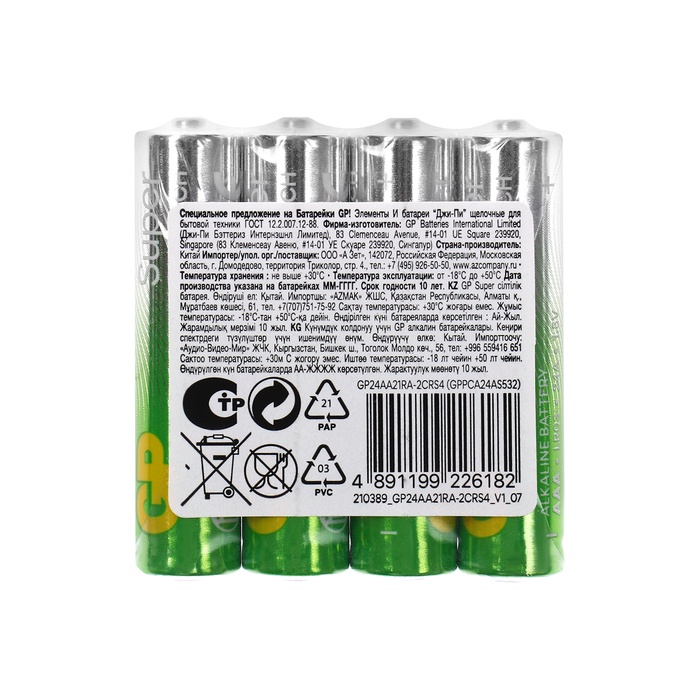 Батарейка алкалиновая GP Super, AAA, LR03-4S, 1.5 В, спайка, 4 шт. — Характеристики