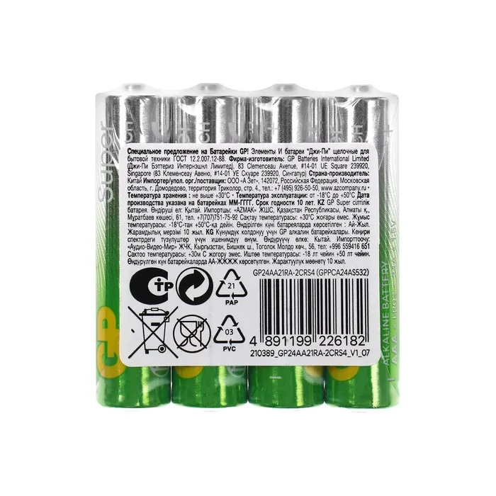С набором GP Super AAA вы замените севшие батарейки в двух устройствах одновременно. Алкалиновые элементы LR03 работают дольше солевых — вы реже покупаете новые. Держите спайку про запас: четыре батарейки AAA всегда под рукой для техники, где важна бесперебойная работа.