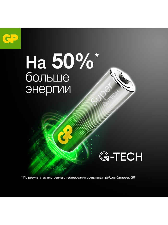 - Энергия для частой замены: Алкалиновая технология GP Super обеспечивает стабильную работу устройств с умеренным энергопотреблением. Оптимальны для пультов ДУ, беспроводных мышек, электронных часов или кухонных весов.