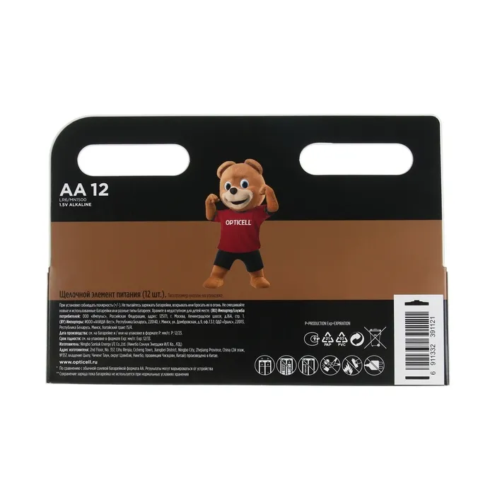 Батарейка алкалиновая OPTICELL, AA, LR6-12BL, 1.5В, блистер, 12 шт — Характеристики