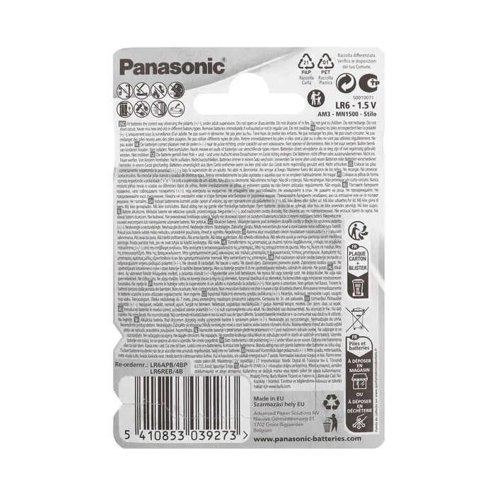 Батарейка алкалиновая Panasonic Alkaline Power, AA, LR6-4BL, 1.5 В, блистер, 4 шт. — Характеристики