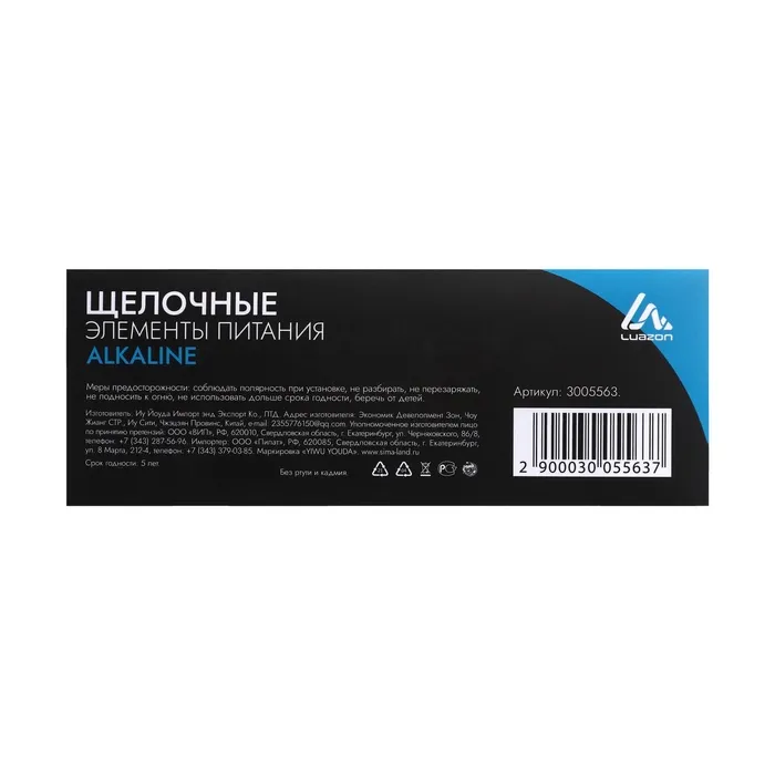 Батарейка алкалиновая (щелочная) Luazon, AG3, LR41, блистер, 10 штук — Характеристики