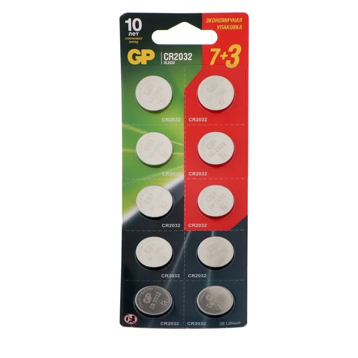 Литиевые батарейки - таблетки GP новой серии из экономичной упаковки (7 шт. + 3 дополнительные.) идеальны для устройств с большим энергопотреблением: фотокамеры и вспышки, брелоки автосигнализации, детские игрушки на радиоуправлении, компьютерная техника. Кроме того, они прекрасно подходят для измерительных и медицинских приборов.