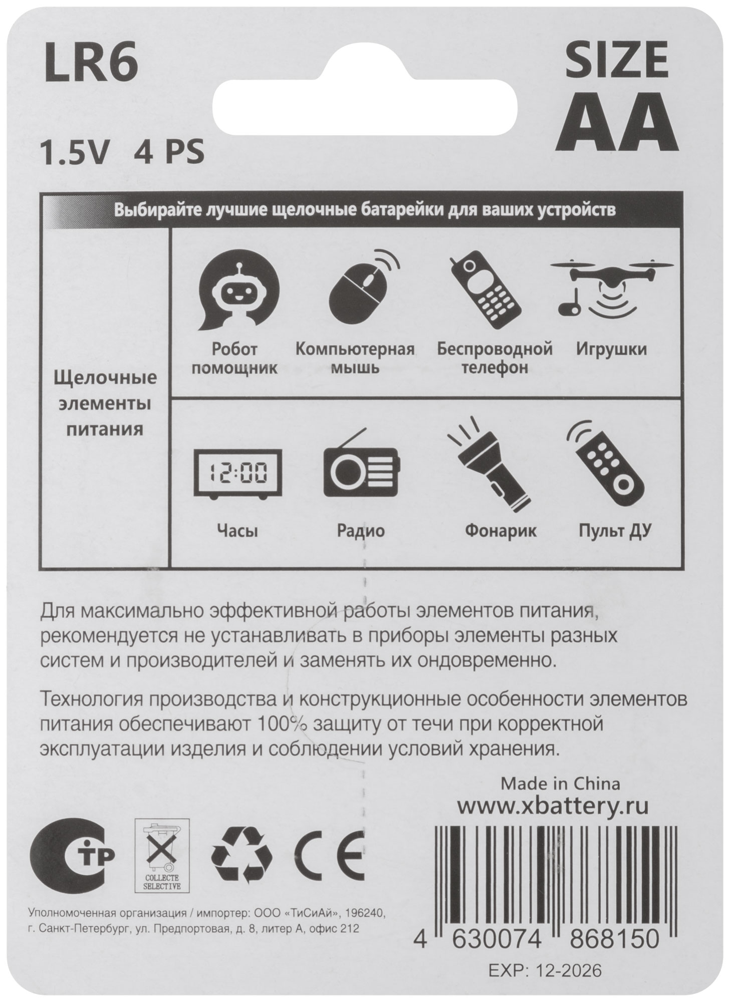 Выберите щелочные батарейки XВАТ, чтобы обеспечить надежное и длительное питание ваших устройств в любой ситуации.