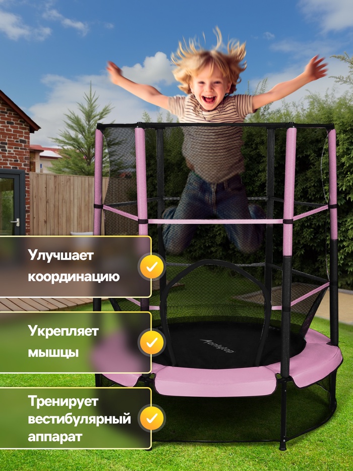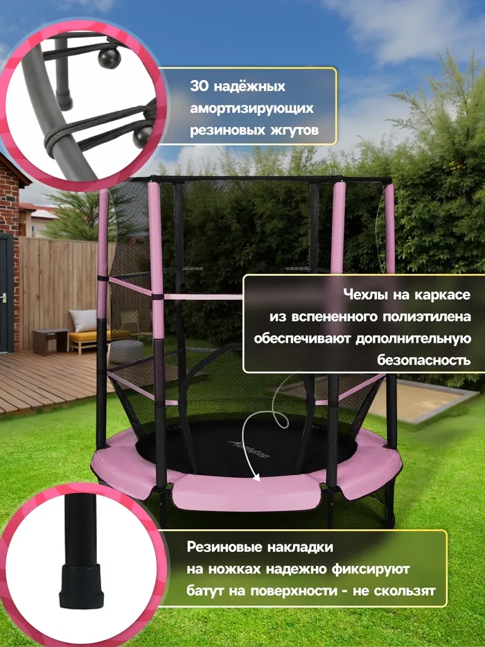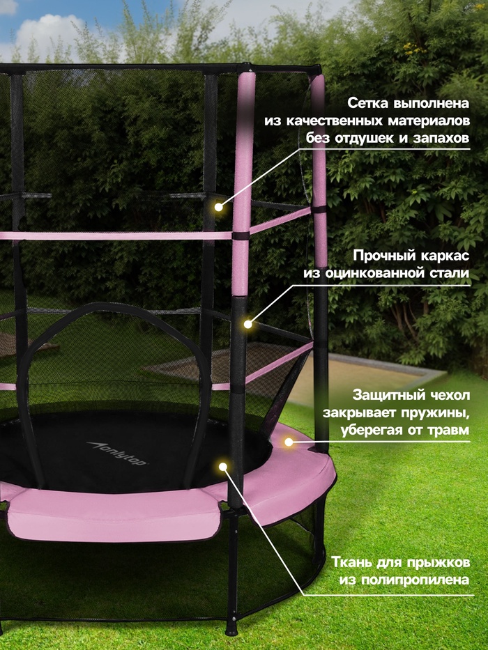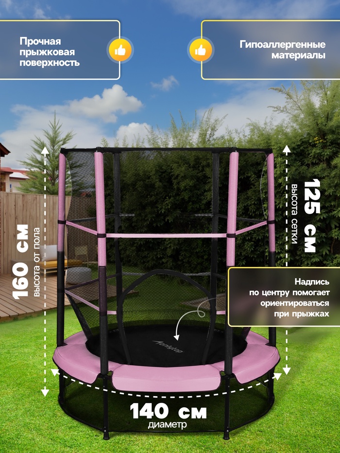Батут 140 см ONLYTOP, высота сетки 125 см, розовый — Характеристики