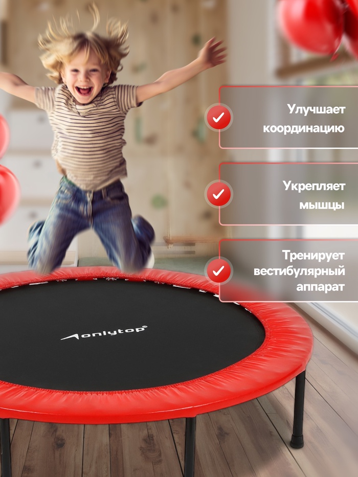 Детский батут подойдёт для размещения дома и на улице. Маленький размер делает его более безопасным для детей, особенно для тех, кто только начинает прыгать. Прыжки на батуте способствуют укреплению физического здоровья детей, развивая координацию, ловкость и выносливость.