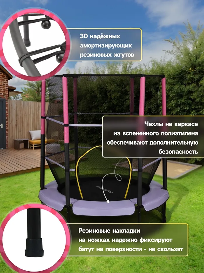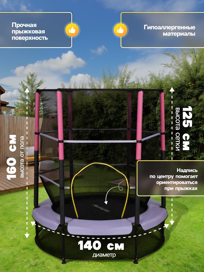 Батут ONLYTOP, d=140 см, высота сетки 125 см, сиреневый — Характеристики