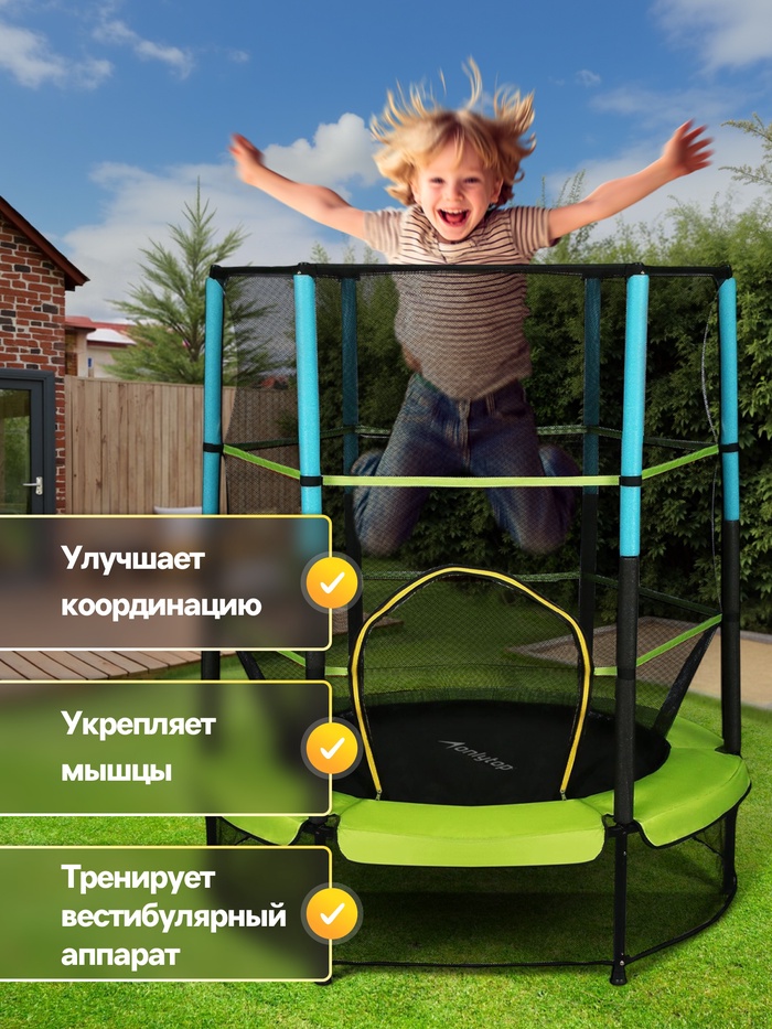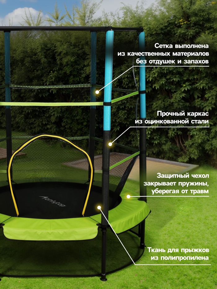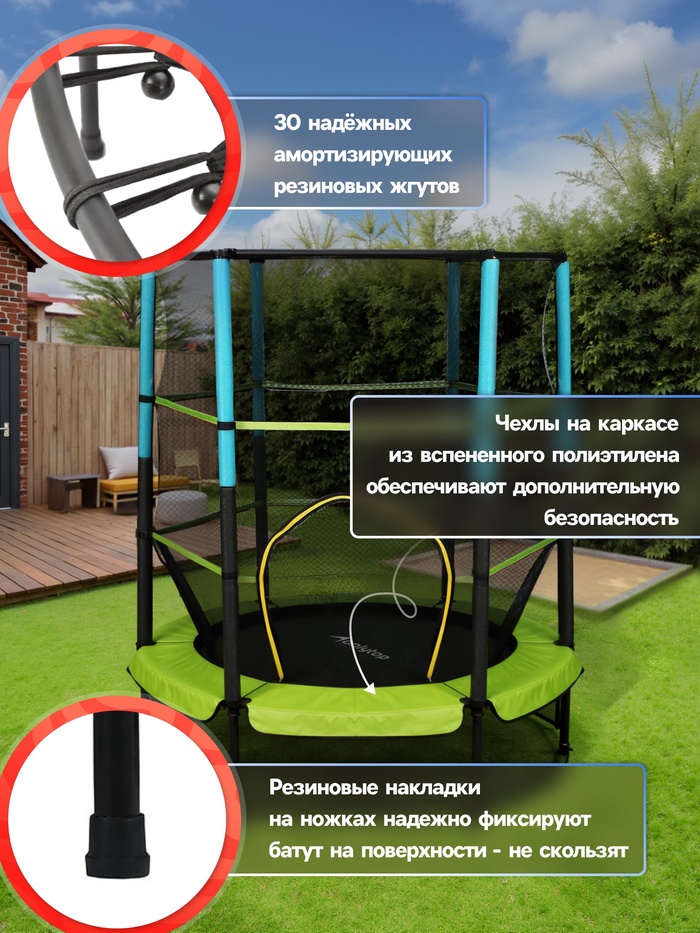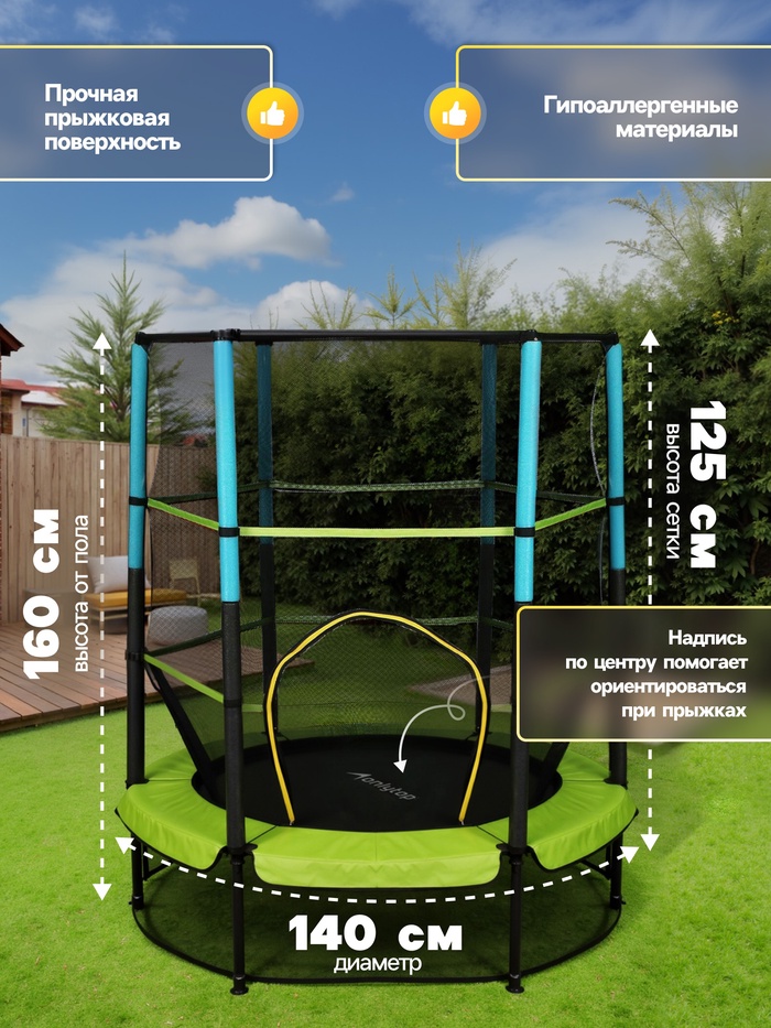 Батут ONLYTOP, d=140 см, высота сетки 125 см, цвет зелёный — Характеристики