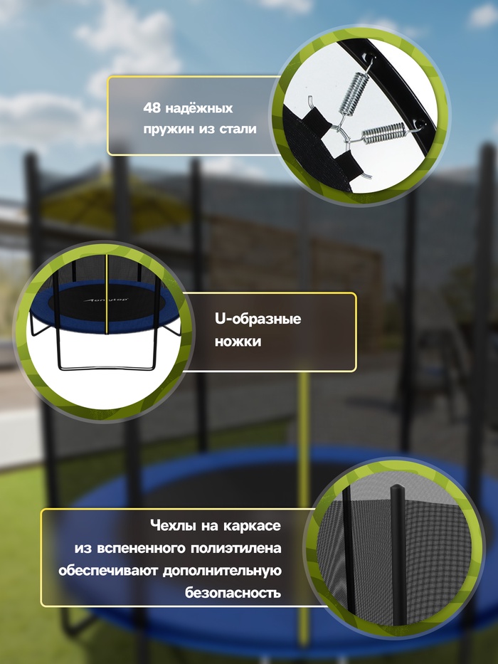 - Сетка обеспечивает безопасность и комфорт при использовании батута.