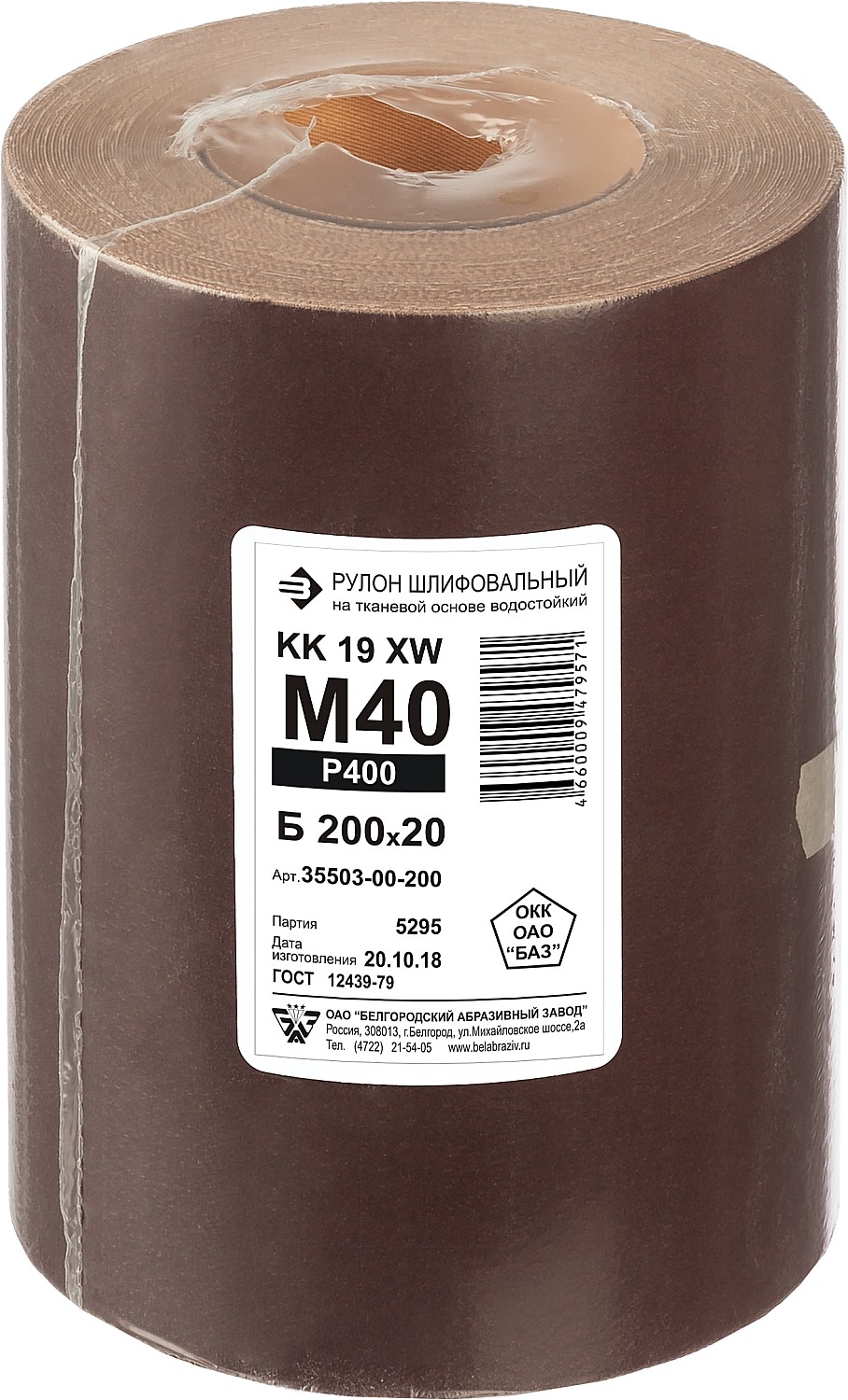 БАЗ KK19FW 0-H (Р400), 200 мм, 20 м, водостойкая, шлифовальная бобина тканевой основе (35503-00-200)