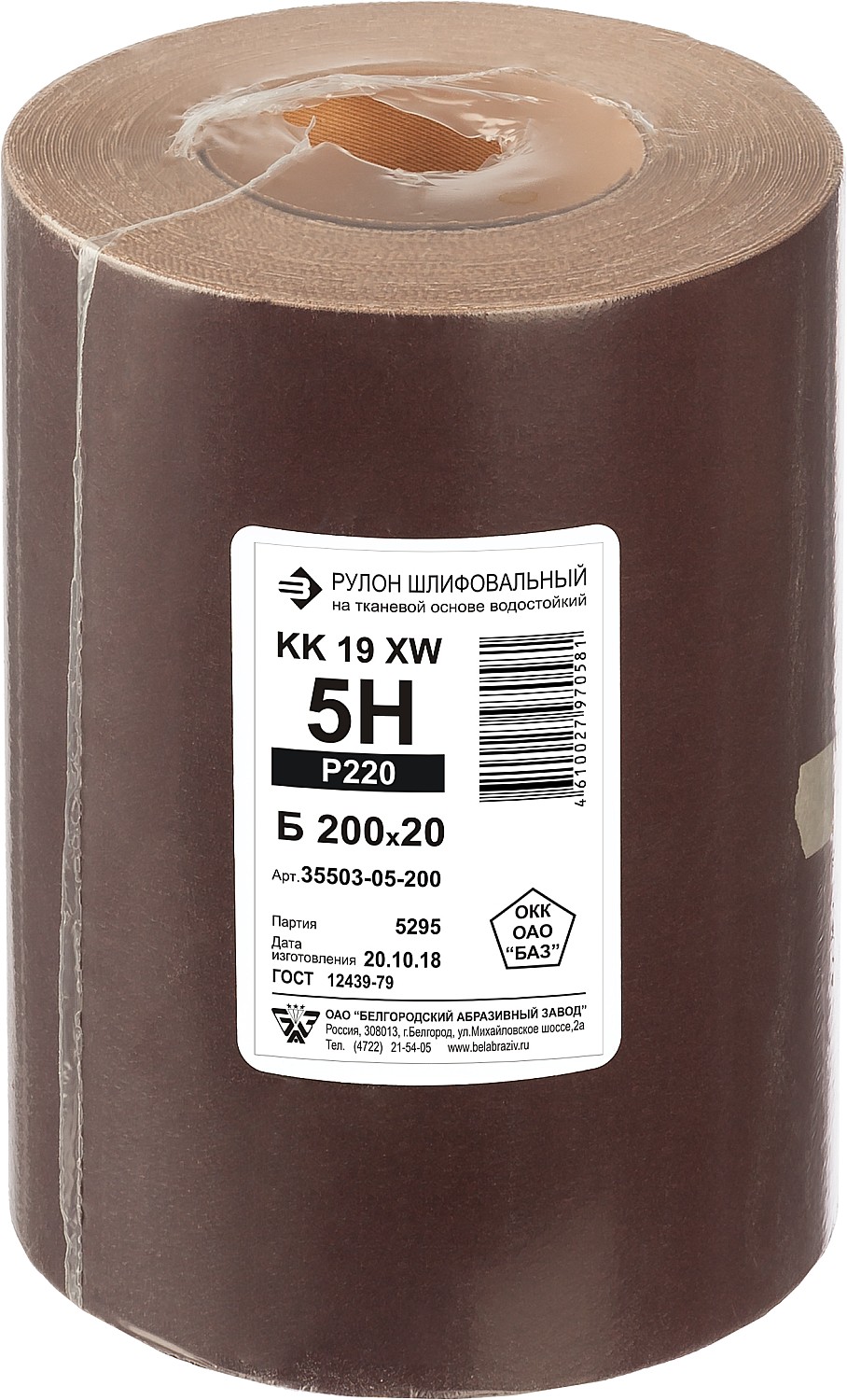 БАЗ KK19FW 5-H (Р220), 200 мм, 20 м, водостойкая, шлифовальная бобина тканевой основе (35503-05-200)
