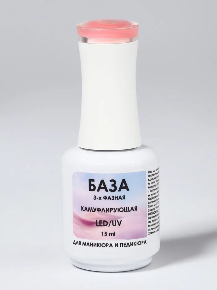 База камуфлирующая для ногтей, трехфазная, 15 мл, LED/UV, розовая (016) — Характеристики