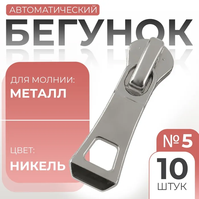 Бегунок автоматический для металлической молнии, №5, 10 шт, цвет никель