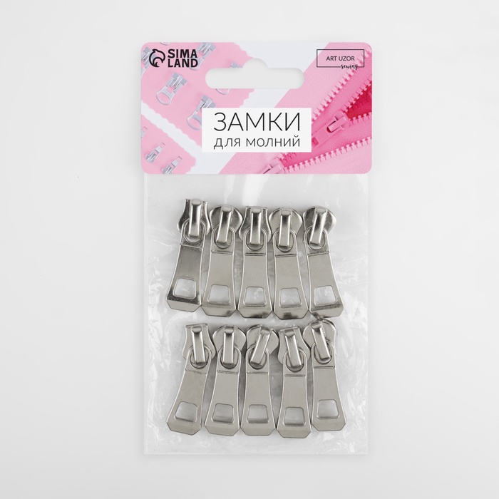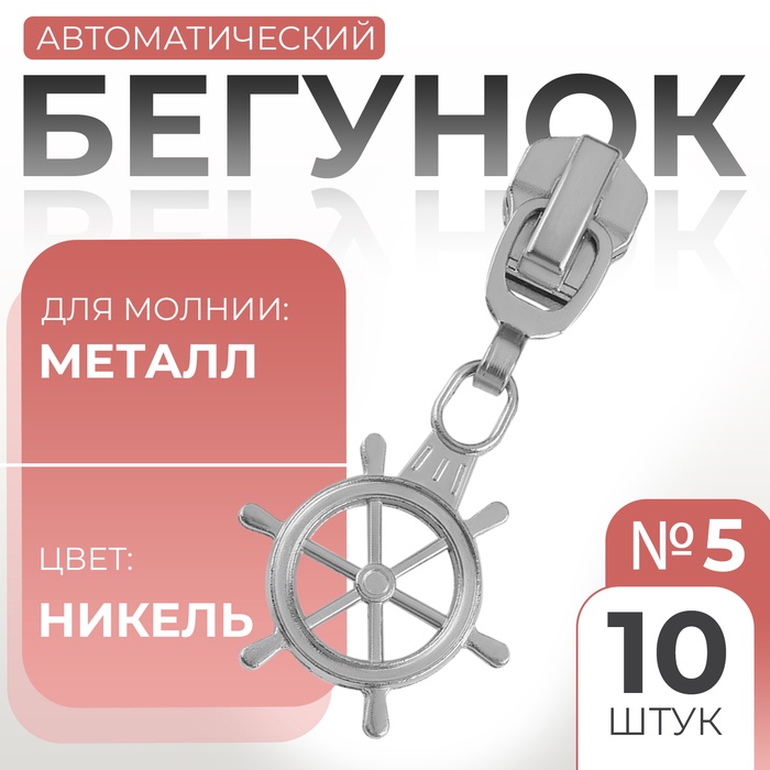 Бегунок автоматический для металлической молнии, №5, 10 шт, цвет никель — Характеристики