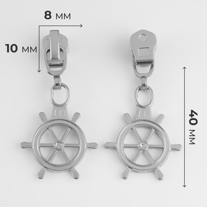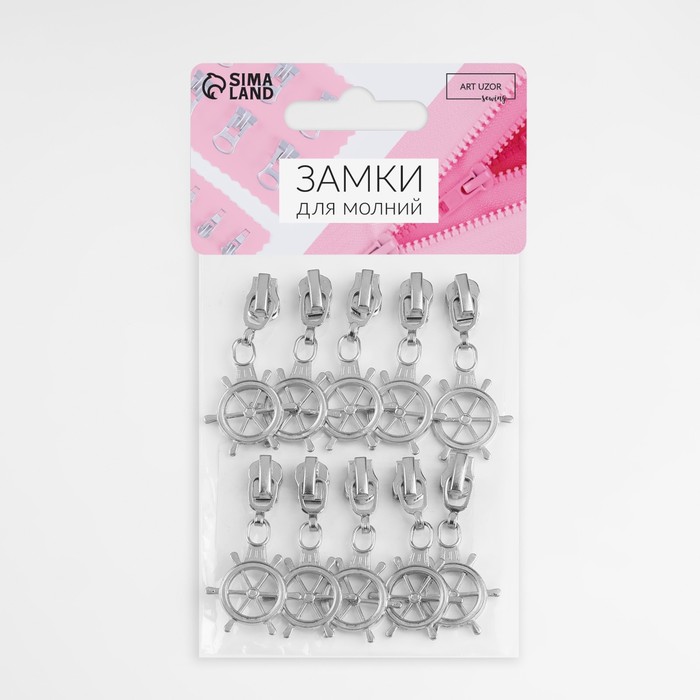 Бегунок для металлической молнии, №3, «Штурвал», 10 шт., цвет никель — Характеристики