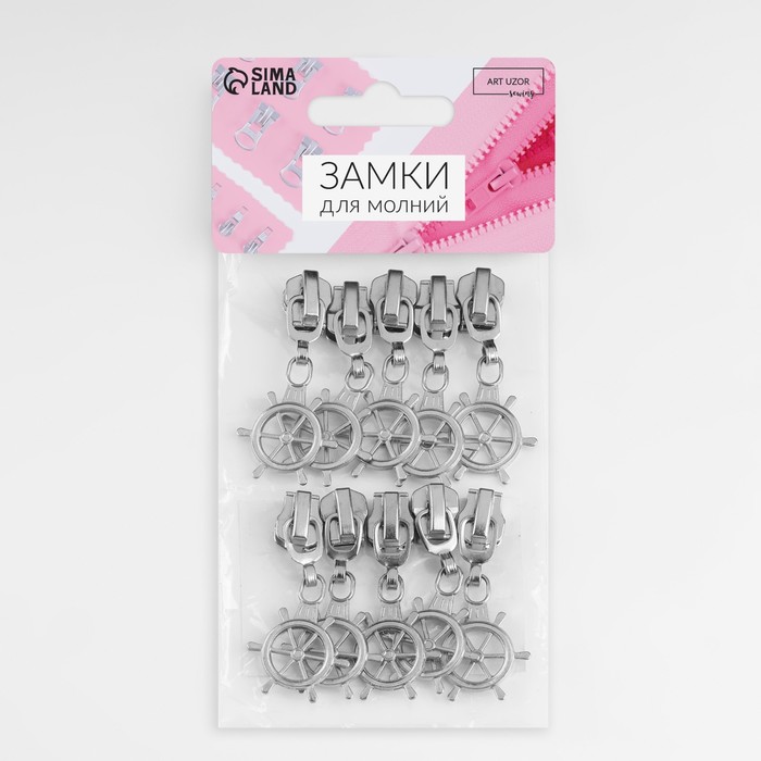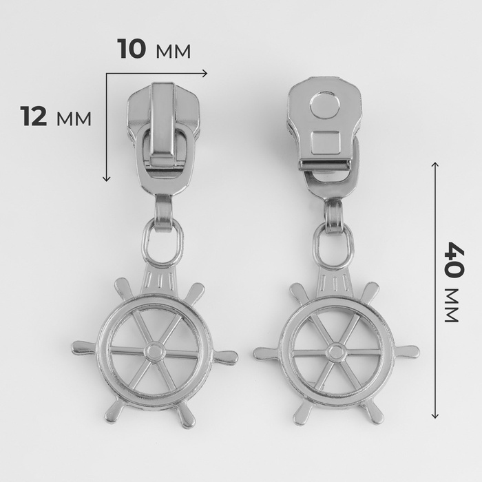 Бегунок для металлической молнии, №5, «Штурвал», 10 шт., цвет никель